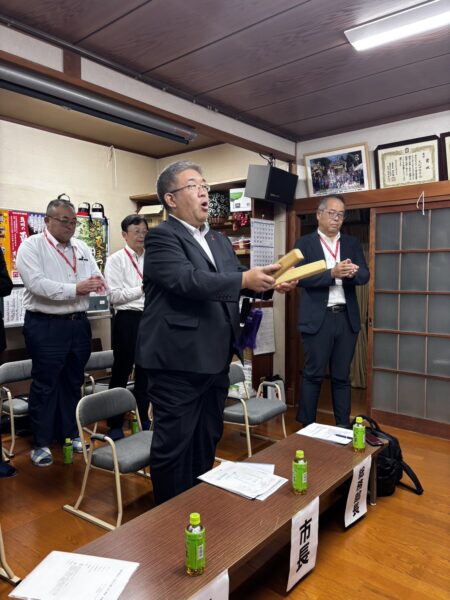 意見交換の最後は、なぜか私の音頭で(💦)出席者全員による「三本締め」を行いました。提案された時は驚きましたが、さすがはお祭りの盛んな桜町です。