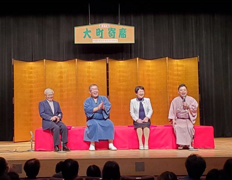 その後、栃木市の大川秀子市長との対談に。それぞれの地域の魅力を紹介させていただく貴重な機会となりました(写真左・小林正男先生、写真右・古今亭志ん丸師匠)。