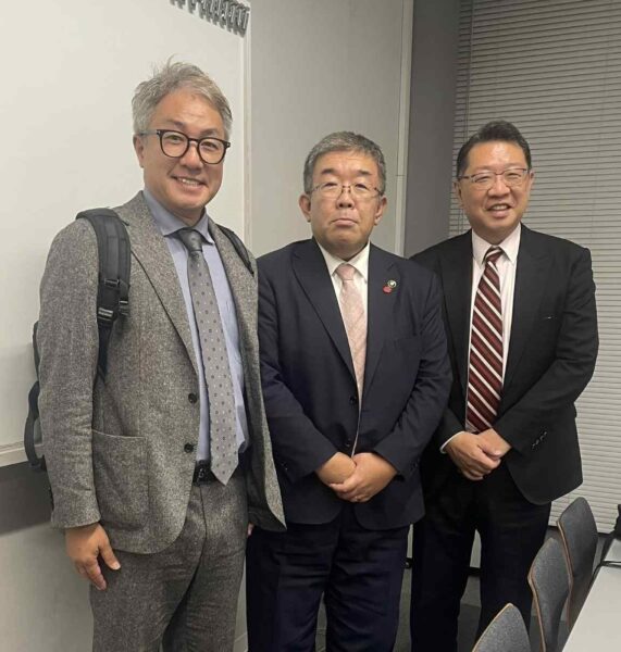 ※下の写真は成澤区長(右)と、受講していた元中野区議の出井良輔さん(左)。